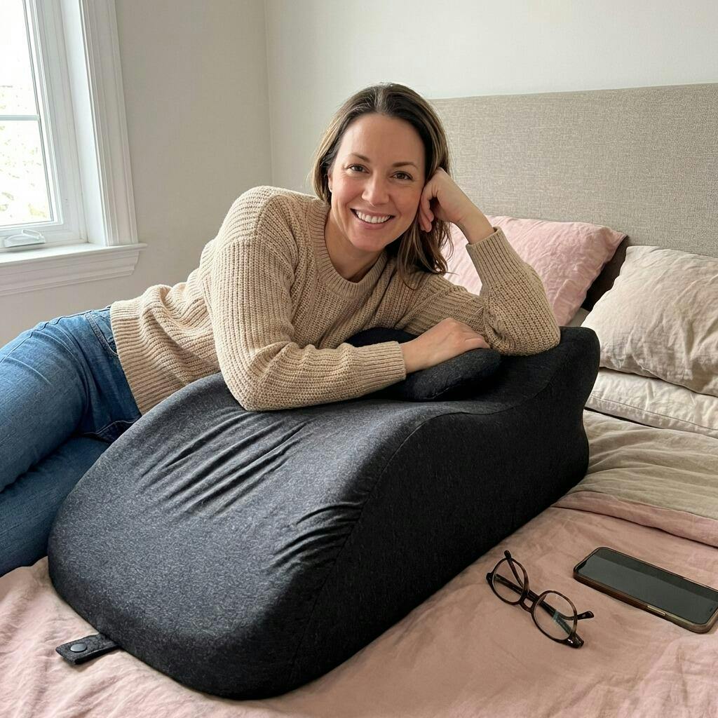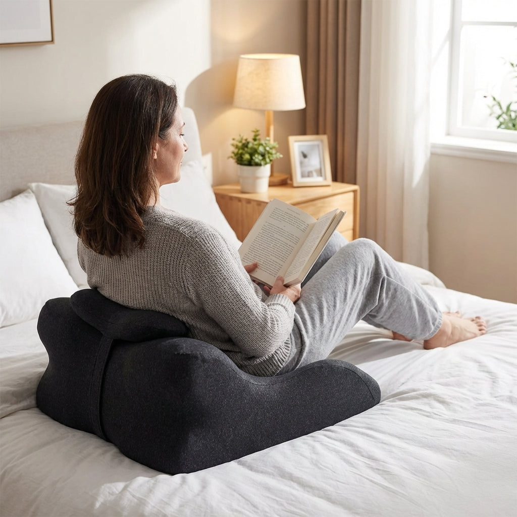 Der 27°-Winkel macht das Kissen auch zur bequemen Rückenstütze: fürs Lesen, Serien schauen oder entspanntes Liegen.