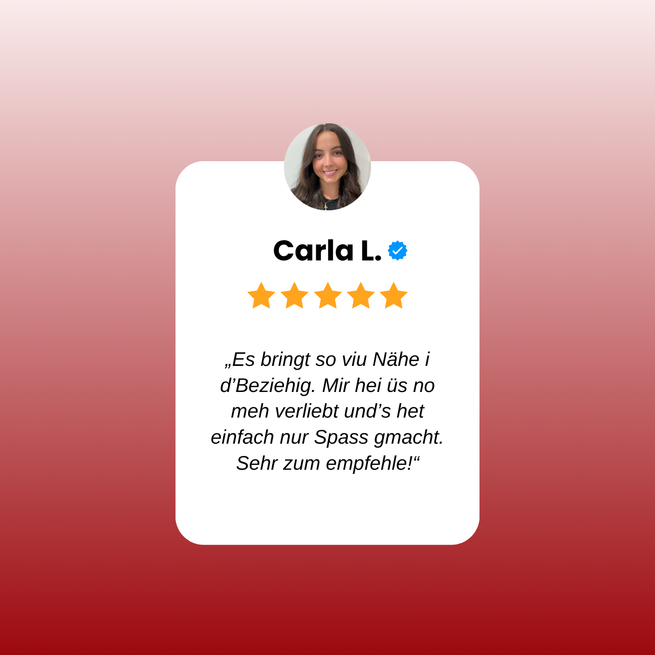Hämmer am Weekend spielt. S’isch nöd nur für Frischverliebti mir sind 7 Jahr zäme und hei trotzdem öppis neus glehrt.
